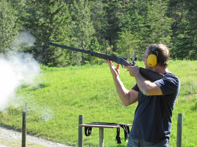 Load - Remington brass, Rem large pistol primer, 58gr Goex FFFg Express, 0.060" LDPE wad, Saeco #740 bullet, unsized, 18.2:1, pan lubed SPG, zero neck tension, 2.775" OAL